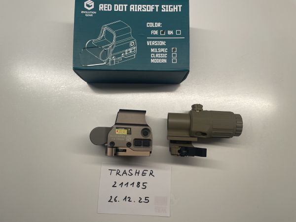 Dazu gibt es ein G33 Magnifier. Dieser hat leichte Gebrauchsspuren, funktioniert jedoch einwandfrei und liefert ein super klares und echt tolles Bild beim Absehen.