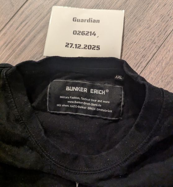 Diesmal ist es ein Shirt vom Bunker Erich in XXL. Das Shirt liegt nur rum also weg damit. An beiden Oberarmen sind Klettflächen für Patches.
