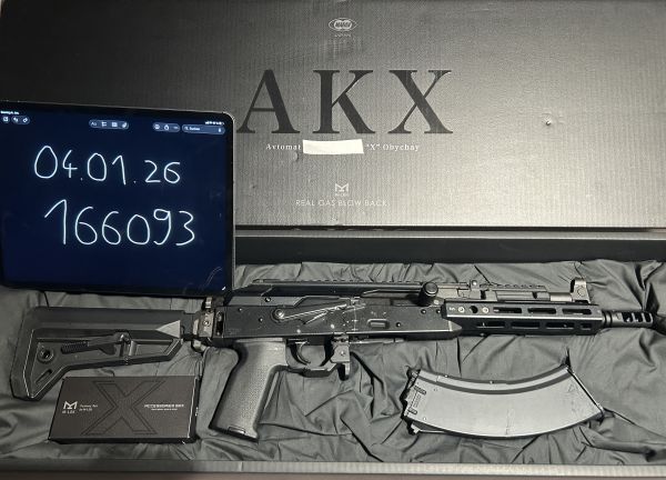 schweren Herzens biete ich hier meine Custom TM AKX mit sechs Ersatzmagazinen und etlichen Upgrades an. Sie hat schon einige Spieltage gesehen und weist dementsprechend auch einige Gebrauchsspuren an Receiver, Handguard, Schaft und den Magazinen auf (Siehe Bilder). Kugelgewicht ist bis 0.4g möglich mit dem verbauten Bucking. Die Energie kann bis ca. 1,5J angehoben oder 0,8J gesenkt werden (Je nach Gas und Temperatur). Enthalten ist das gesamte Original Zubehör / Teile bis auf der Schaft. Des weiteren sind drei TM AKX und drei TM AKM Magazine in dem Kauf enthalten. Alle sind komplett dicht und funktionieren einwandfrei.