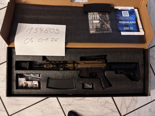 ich verkaufe hier meine ungespielte E-25 Edge 2.0 da ich das Hobby leider aus Zeitmangel aufgeben muss. Ich habe sie mir letztes Jahr zu Weihnachten selbst geschenkt, bin aber aufgrund von Zeitmangel im Jahr 2025 nicht ein mal dazu gekommen, diese Waffe zu spielen. Bevor sie hier vergammelt, gebe ich sie lieber ab da ich einfach keine Zeit mehr für Airsoft finde. Waffe ist so gut wie ungebraucht, nur ein paar Testschüsse durch den Chrono und um das Hop-up einzustellen. Tensioner und Bucking direkt bei Airsoft 2 Go tauschen lassen alles Inkl. Rechnung, um ein höheres Kugelgewicht spielen zu können. Die Waffe ist damit perfekt auf 0,28 - 0,36 Kugeln ausgelegt. 3 ORIGINAL Magazine sind mit dabei. Es sind noch ein Paar ersatzteile wie Original Tensioner und Bucking dabei, nochmal 2 picatinny schienen zum anbringen, ersatzschrauben ohne Ende.