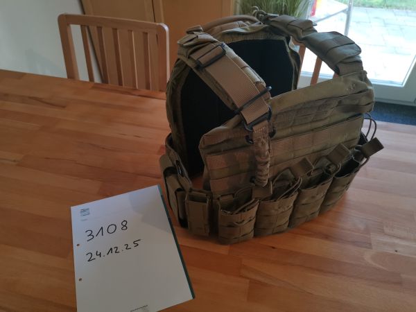 Bei der Weste handelt sich um den Plate Carrier MKIII L-XL in khaki. Die L-XL Version ist etwas breiter als die S-M Version und hat damit etwas mehr Molle zu Verfügung. War damals schon selten zu bekommen und ist vermutlich heute recht rar.