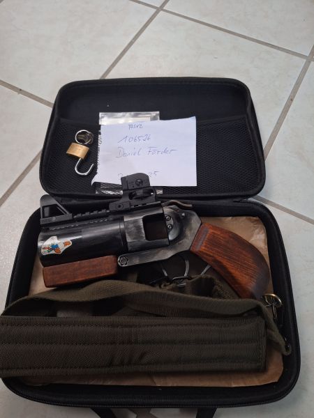 ShowGuns 40mm Airsoft Mini Hand Canon Metallgehäuse Echtholz Used-Look inkl. Tas...