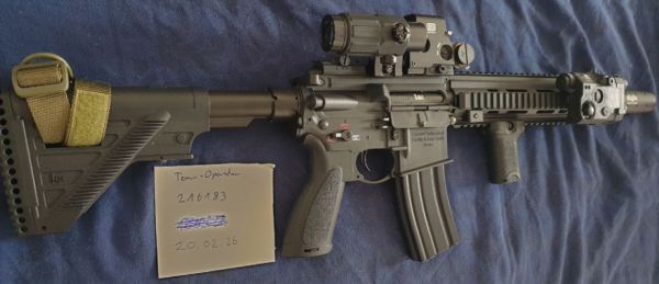H&K G27K (E&C SMR17) mit Airsoft Artisan Slimline Handguard, Optik, Bega...