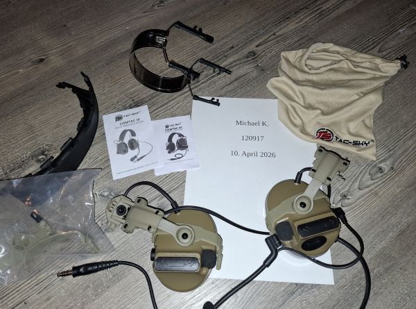 Tac-Sky Comtac III Coyote mit ARC Mount Adapter und Zubehör