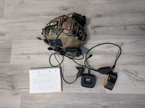 Taktischer Helm mit Earmor Headset Funkgerät (Boafeng) PT-Einheit Ladegerät