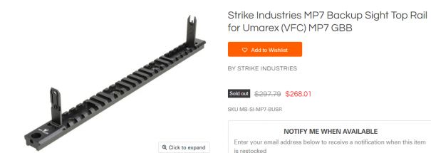 Zum Verkauf steht eine neue unbenutzte Strike Industries MP7 Backup Sight Top Rail für die Umarex VFC MP7 GBB.