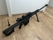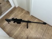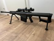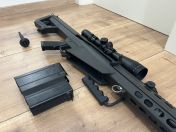 Ich biete hier eine echte Rarität zum Verkauf an, ein voll lizenziertes Barrett M82 von Socom Gear. Dieses ist komplett aus Stahl gefertigt, wobei die CNC gefrästen Einzelteile bemerkenswert schön geschweißt wurden. Das Teil bringt mehr als 11kg auf die Waage, Vollmetall ist hierbei wirklich eine Untertreibung!
