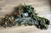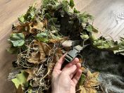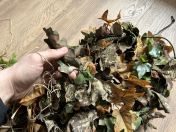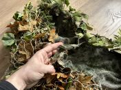 Für das Mikromuster habe ich aus ConCamo Green und Brown Stoff, 3D Blätter ausgeschnittenen und mit Kabelbindern auf der Ghillie Hood angebracht.