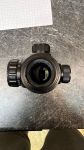 Hier ein Red Dot von Red Dragon. Funktioniert noch, allerdings ist die Batterie (Cr2032, wenn ich mich nicht irre) sehr schwach. Fürs Foto hats gereicht. Hierfür braucht man noch eine 30mm Mount. gibt's günstig auch hier im ASVZ häufiger mal.