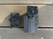 Das Holster hat eine über einen Stahlhebel abnehmbare und um 360° verstellbare Gürtelhalterung für unterschiedliche Gürtelbreiten.