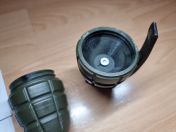 Biete hier eine Dummy Granade aus Kunststoff. Der Körper kann aufgeschraubt werden und als Behältnis dienen. Unten sind Ablaufösen falls mal Wasser in Gehäuse kommen sollte.