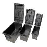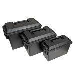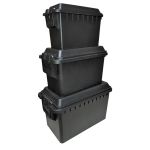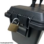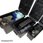 Die praktischen universal Munitionskisten bieten Dir viel Platz, um Dein Equipment mit auf Reise zu nehmen. Egal ob Airsoft, Angeln, Camping oder als Werkzeugbox - Diese Kisten sind ein absolutes Must-Have. Und solltest Du sie mal nicht brauchen, dann lassen sie sich kinderleicht ineinander verstauen und somit extrem platzsparend einlagern. Der Deckel der Kisten ist so designt, dass der Griff oberflächenbündig im Deckel verschwindet; ideal für Transport und Lagerung. Außerdem lässt sich jede Kiste verschließen (max. 6 mm Bügeldurchmesser des Schlosses). Spritzwasserschutz bietet Dir die Dichtung im Deckel.