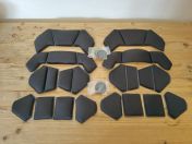 Kommt mit normalen Standard Pads und einmal mit Komfort Pads ,zusätzliche Klettflachen zum Anbringen sind ebenfalls dabei.