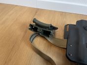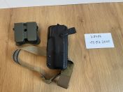 Plattform ist von Safariland, das Holster an sich von Templars Gear. Außerdem lege ich ein Doppelmagazinhalter von Ammomax dazu.