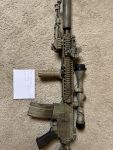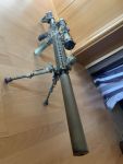Gehäuse ist Celsius alles andere ist geändert. HU ist Systema mit systema lauf. Elektronik ist Etiny. Mk18 block 2 umbau mit scope und micro dot am ris für kurze Distanz. Schalli, zweibein, scope und microdot gehören dazu. Waffe funktioniert und hat ein F.