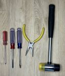 - Kleines Sortiment an Werkzeug (Kunststoffhammer, Spitzzange, 3 Schraubendreher)