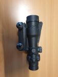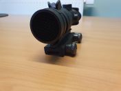 angeboten wird ein ACOG 4x von Aim-O. Die Optik besitzt einen Fiberglas Stab der je nach Lichteinstrahlung die Helligkeit des Fadenkreuzes anpasst, somit ist keine Batterie nötig. Zusätzlich ist ein Wabenvorbau dabei um Spiegelungen durch Sonneneinstrahlung zu verhindern.