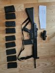 Mit dabei eine Low-Mount, Rotpunktvisier, 3 Punkt Tragegurt und 7 Mid Cap Magazine von Classic Army (3 wurden schon verkauft)