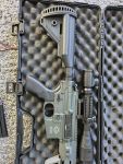 Verkauft wird alles was auch auf dem Foto zu sehen ist. Sprich die ICS, Zielfernrohr, Frontgriff, Akkus und der Koffer.