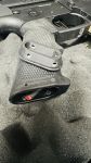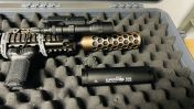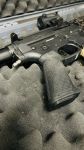 Zusätzlich mit dabei ist ein 3D gedruckter Schalldämpfer im Action Army Hive Aluminium Sound Suppressor Design. Es ist außerdem ein MTW FRAC verbaut, wodurch der Akku nun im Griff verstaut wird. Ich persönlich finde den MTW Griff ergonomischer, als den Batterie Griff. Daher habe ich eine Kappe für den Griff gedruckt, welche einen Dichtungsring besitzt und mit Bolzen im Griff gehalten wird. Sieht super aus, ist wasserdicht und hält bombenfest.