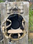 Zum Verkauf steht ein neuwertiges, komplett montiertes taktisches Helm-Set in Sandfarben, bestehend aus: