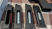 Es ist ein GBB HopUp Gummi (Grün) von Begadi verbaut und von Cooper and Brass habe ich die Sandgrips angebracht. Die Glock kommt mit 4 Magazinen von denen eins leicht undicht am oberen Ventil ist. Es ist das originale CO2 und drei VFC CO2 Magazine dabei.