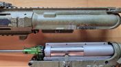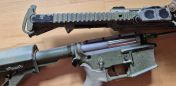 Zudem ist der Typische Griff, Stock Schalldämpfer und Charginghandle verbaut.