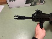 Gebrauchsspuren: kleinere Lackschäden am Upper Receiver sowie Abrieb an der Flash Hider-Attrappe (siehe Bilder)