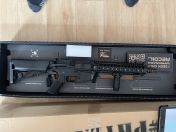 Verkaufe Phylax Mk. 18 von Bolt aus dem Hause Bad Agency. Das Spielgerät ist von 2021, ich habe es bei Bad Agency neu gekauft. Ich habe am Sektor Gear die Stahllaufbuchsen durch SHS 6 mm Kugellager ersetzt. Außerdem habe ich den Motor durch einen Warhead Base 20 K Motor ausgetauscht. Diesen habe ich ebenfalls neu bei der Bad Agency gekauft. Das Gerät kommt in der Originalverpackung. Sie tackert wie eine Eins. Macht richtig Bock. Dazu gebe ich noch einen Akku von Begadi. Ein schwarzes MRO QD Red Dot mit Killflash ist auch dabei. Hinten die Akku Klappe fehlt. Hat mich aber nie gestört.