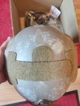 Ca 3mm starkes Material, Coyote, zusätzlich gibt es noch einen Faceschield, sowie die Reste eines alten Faceshield.