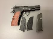 Das Pistole schiesst wie Sie soll, es wurden nur die Griffschalen getauscht. Beide Sätze sind dabei, genauso wie das eine Magazin.