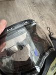 die Maske hat schon ein paar Spieltage mitgemacht (sowohl airsoft als auch Paintball), Gebrauchsspuren sind vorhanden. Schaut dazu bitte in die Bilder rein. Bei Bedarf, lasse ich euch gerne mehr zukommen. Das Glas ist wirklich stark gebraucht aber man kann in meinen Augen noch problemlos mit spielen.