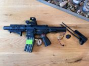 Verbaut wurde eine Perun ETU++, ein Holo Visier, ein ACETECH Blaster Tracer, ein Griff am Lauf.