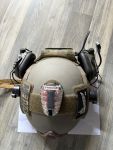 Dazu ein Earmor Headset mit Mikrofon, sowie Batterie pouch und eine IR Laser Einheit.