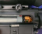 Kommen wir zu den dingen die etwas schief liefen der Ladehebel was den Hülsen Auswurf öffnet ist ein Dummy da ich Fettgefingert habe und ein kleinen Plastikteil gebrochen ist die Lösung ist es die Feder was die klappe offen hält umzudrehen das sie geschlossen bleibt (benachteiligt nichts ist einfach nur Dauer geschlossen) das wars auch