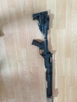 Mit dabei sind Schalldämpfer, die rails am handguard und die peq Box .Mit verbaut ist das Originale System von King Arms. Es fehlen Trigger unit , Bolt und das Einstellrad fürs Hop Up .Das kann dann vom jeweiligen Gewehr genutzt werden .