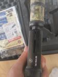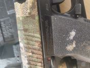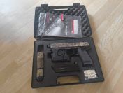 Verbaut wurde ein novritsch Metal Slide und sie wurde mit pencott cammo beklebt .Der slide weist Bohrungen von einer Red dot Montage auf.Was verbaut wurde keine Ahnung ,sie funktioniert gut ,habe sie mit 36 probiert und die hoppt sie . Mittlerweile sehr selten geworden .