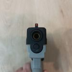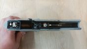 Technisch Änderung: es wurde eine stärkere Schlitten-Feder eingebaut, damit dieser besser und zuverlässiger wieder schließt. Das original Hop-Up Gummi wurde gegen ein Begadi Pro GBB5 50° (Grün) getauscht. Dieses ist aber nicht vernünftig eingeschossen. Dementsprechend schießt sie nicht so genau, wie sie könnte. Ein nagelneues Bucking mit 60° (Blau) ist aber vorhanden und wird als Zubehör dazugegeben. Ebenso die Original-Feder des Schlitten.