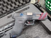Zum Verkauf steht meine Mk18, welche liebevoll diverse umbauten erhalten hat, zusammen mit meiner g force 15 zusammen im koffer. Die MK18 ist eine originale daniel defense mit hpa umbau. es wurde diverse teile geändert damit so so leicht und präzise wie möglich wird, damit auch lange spieltage spaß machen. es wurde der schaft, handgriff sowie der griff in robusten 3d druck angefertigt. die stock tube wurde auf alu umgebaut und gekürzt. der handguard wurde von stahl auf alu umgebaut. Der outerbarrel besteht aus carbon sowie der eigenbauschalldämpfer des das geräusch minimiert. im inneren wurde die verbaute Polarstar Kythera hpa engine komplett überarbeitet damit sie ordentlich und leichtgängig läuft. ein neuer lauf sowie eine maxx modl und ein speed trigger haben ihren weg auch in die waffe gefunden. on top gibt es ein zielfernrohr von begadi. Dazu gibt es 4 magazine mit jeweils 250 schuss was alles zusammen Lackiert wurde. Die waffe ist in einem tadellosen zustand, optisch sowie auch technisch. Die pistole ist eine G Force 15, welche immer gründlich gepflegt und gewartet wurde. hierzu gibt es 2 gasmagazine und ein CO² magazin. Das design der pistole wurde dem der MK18 nachempfunden. das komplette sett kommt in einem waffenkoffer mit dazu angepassten schaumstoff, welcher abschließbar ist. Habt ihr fragen, dann kontaktiert mich bitte.