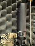 Die Markings wurden damals von Sniper auf den aftermarket Body übertragen. Der Body stammt aus HK. Der Schalli hat zwar tatsächlich eine Wirkung aufs Schussgeräusch, jedoch dient er mehr der Optik. Der Innenlauf ragt nicht über den Flash Hider hinaus.