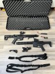ich habe aus beruflichen Gründen das Hobby Softair aufgeben müssen. Daher verkaufe ich alle meine Waffen und das dazugehörige Zubehör. Quasi ist es ein Komplettpaket! Ich werde nun die Sachen die auf den Bildern zu sehen sind beschreiben und fange mit meinem Liebling an:
