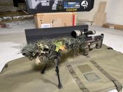 Ich habe für die SRS eine Tarngirlande hergestellt, welche die Waffe im Wald kaum erkennbar macht.