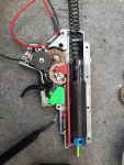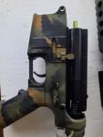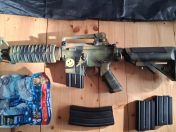 Die M4 (in klassischer Buschmasteroptik) ist eine Zusammenstellung aus mehreren meiner älteren Waffen. Sie ist bis auf die Hop-up Kammer und Kugellager in der Gearbox fast voll getunt, mit passendem Tuninglauf und neuem Hop-up Gummi, Tuningmotor, Pistenhead, 4 x M16 Midcap Magazine, Waffensling und Nozzle (siehe Fotos).