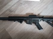 Hierbei handelt es sich um eine DPMS Panther M4 zu Teil aus Vollmetall. Sie hat ein Mosfett verlötet. Ich habe ihr eine neue Gearbox von Cyma verbaut.