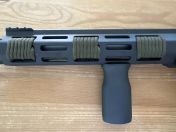 optisch habe ich Paracord am Lauf befestigt welcher entfernt werden kann. Ebenso haben die Magazine eine farblich passende Endkappe bekommen. Auch ein Griff wurde montiert und ist auch abnehmbar.