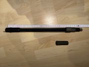 zum Verkauf steht ein Outer Barrel aus Aluminum, passend für PTW Waffen. Hersteller müsste Dytac sein. An dem Außenlauf ist momentan ein Surefire 3 Pong Flashhider mit Markings angebaut. Zusätzlich ist noch das Gasleitrohr und die Gasabnahme dabei. Zustand ist sehr gut. Lediglich einige kleinere Spuren von der Montage sind vorhanden (siehe Bilder). Der Lauf hat eine Gesamtlänge von ca. 406mm (gemessen von ganz hinten bis ganz vorne). Gewinde müsste aktuell zu 99% 14mm negativ sein. Es lässt sich aber auch eine andere Gewindehülse einschrauben in den Lauf, so dass auch andere Außengewinde zur Verfügung stehen.