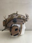 Der Helm kam nur beim Airsoft zum Einsatz und hat außer ein paar Kugeltreffern keine Beschädigungen. Zu den Anbauteilen, wie der NVG Mount, dem Antifog und dem earmor sind alle Originalverpackungen ebenso vorhanden.