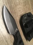 Kleines EDC Messer mit Scheide und Clips für die Befestigung am Gürtel, Molle oder Rucksack.