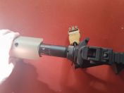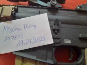noch nie bespielt wurden und seit dem an der Wand gewesen, sie funktioniert noch einwandfrei. Hat ein Gate Aster verbaut und das Handling ist in Ordnung. Frontgriff und Optik sowie auch die Laserattrappe liegen bei genauso wie ein One Point Sling, genauso wie der Original Karton das Original Mag und ein Highcap. Das einzige was ich noch dran gemacht hatte war am Stock hinten eine Schicht Panzertape ranzumachen wegen wackeln.