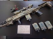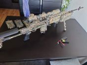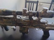 Habe die M14 etwa 6 Jahre und sie hat jetzt lang genug staub angestrzt! Sie war bei Begadi in der Tuning Werkstatt (als die vor langer zeit noch Fremdwaffen zum Tunen angenommen haben), sodass sie mit eingestelltem Hop Up auf 2,2 Joule kommt. Am Verschlussfang hat Begadi etwas kacke gebaut -> ist kaputt. Die Akkus werden in der Batterie box untergebraucht, sodass man nicht immer 6 Schrauben mit einem Imbus öffnen muss sondern nur eine mit der Hand. Waffe und Magazine mit Paintjob (siehe Fotos).
